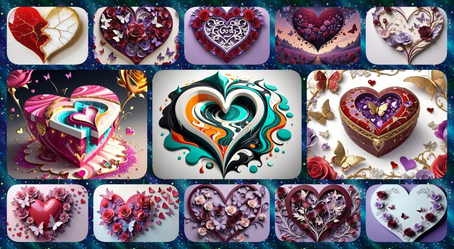 I tried a variety of filters and had some cool results. My favorites are usually abstracts, but the literal heart of glass seemed like the best intro picture, especially once I added a frame from the Photo Studio Pro app. (You can find that one at the Google Play Store by clicking on the name of the app). I also used that app to make a collage of all the different designs I created so readers can see a bit of my process. Here’s the collage…